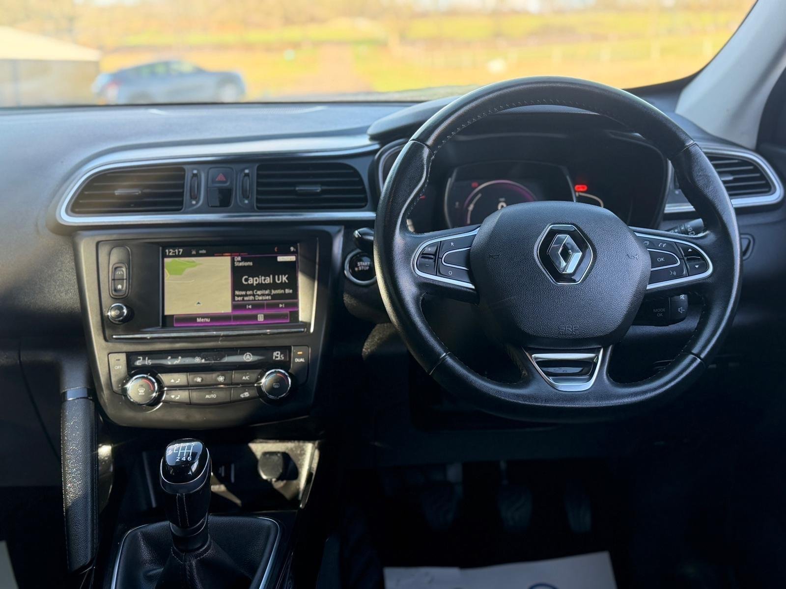 This 2016 Renault Kadjar TCe Dynamique Nav boasts a clear vehicle history check, offering you peace of mind. This stylish SUV features a 1.2 litre petrol engine and meets Euro 6 emissions standards. Inside, you'll find the Dynamique Nav trim, complete with a hands free keycard for keyless entry, automatic dual zone climate control, and automatic headlights. Entertainment is provided by an Arkamys 3D Sound DAB radio with Bluetooth and USB connectivity, alongside Apple CarPlay for seamless smartphone integration. The Kadjar is designed to be economical and affordable to run. Its impressive fuel economy of 50 miles per gallon indicates it is more efficient than many similar vehicles. Furthermore, its low insurance group rating and low CO2 emissions mean you can expect lower running costs, making it a sensible choice for everyday driving. -